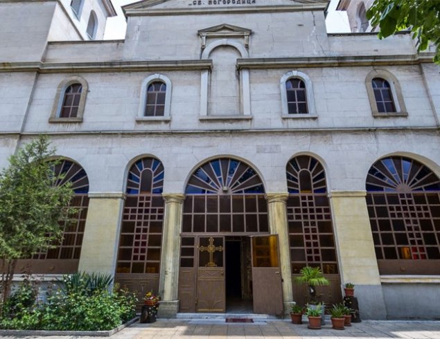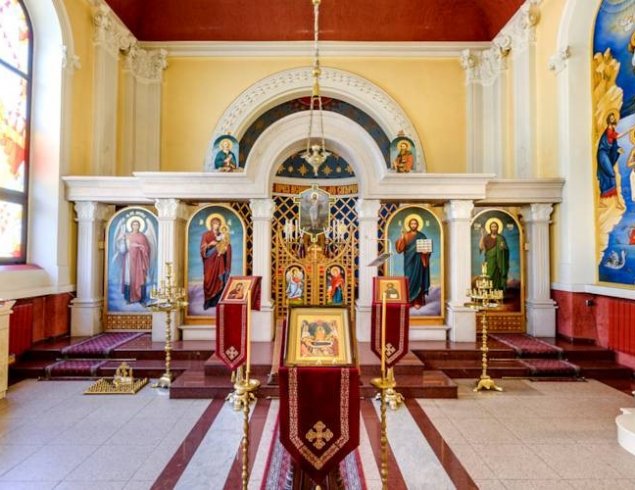 Интериорът на катедралата е богато оформен с дървен иконостас, а...